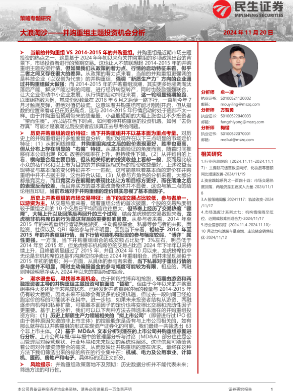 【民生证券】【20241120】大浪淘沙——并购重组主题投资机会分析-27页