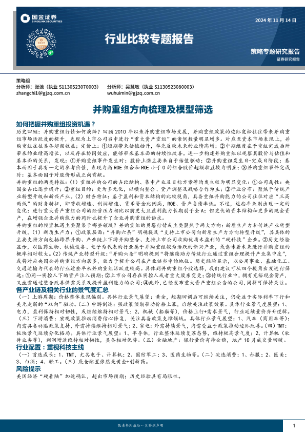 【国金证券】【20241202】2024年12月02日更新-【国金证券】行业比较专题报告:并购重组方向梳理及模型筛选-38页