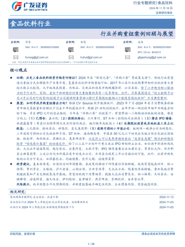 【广发证券】【20241118】2024年12月24日更新-食品饮料行业:行业并购重组案例回顾与展望-24页
