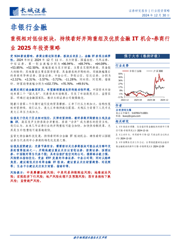 【长城证券】【20250112】券商行业2025年投资策略:重视相对低估板块,持续看好并购重组及优质金融IT机会-15页