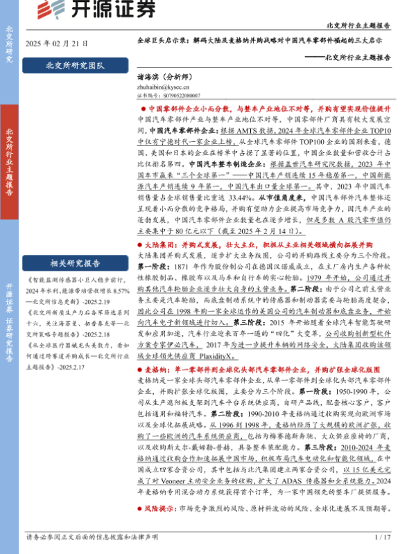 【开源证券】【20250304】全球巨头启示录:解码大陆及麦格纳并购战略对中国汽车零部件崛起的三大启示-17页