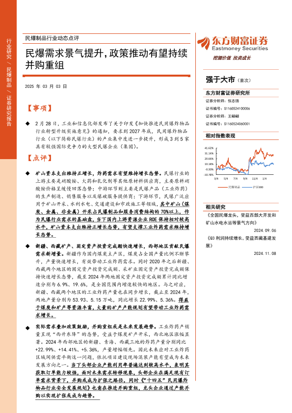 【东方财富证券】【20250303】民爆制品行业动态点评:民爆需求景气提升,政策推动有望持续并购重组-20页