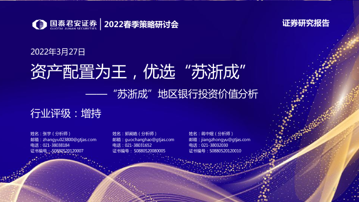 【国泰君安证券】【20220327】银行业“苏浙成”地区银行投资价值分析:资产配置为王,优选“苏浙成”-27页