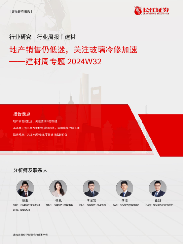 【长江证券】【20240830】2024年08月30日更新-【长江证券】建材行业周专题2024W32:地产销售仍低迷,关注玻璃冷修加速-240821-16页