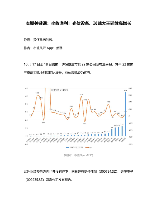 【市值风云 App】【20241025】2024年10月25日更新-【市值风云】本期关键词:坐收渔利!光伏设备、玻璃大王延续高增长-16页