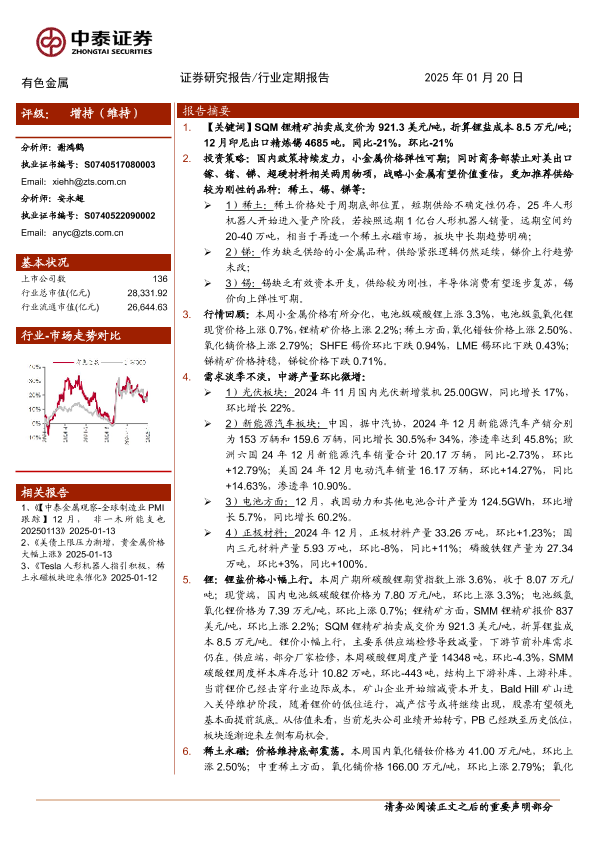 【中泰证券】【20250120】2025年02月11日更新-【中泰证券】有色金属行业:SQM锂精矿拍卖价格超预期,节前备库抬升锂价-25页