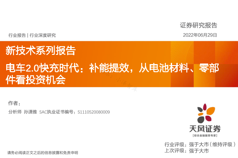【天风证券】【20220811】电车2.0快充时代,补能提效,从电池材料、零部件看投资机会-34页