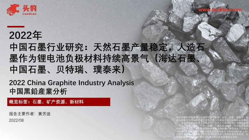 【头豹研究院】【202208】2022年中国石墨行业研究:天然石墨产量稳定,人造石墨作为锂电池负极材料持续高景气-23页