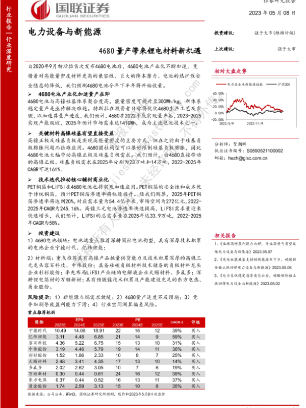 【国联证券】【20230509】电力设备与新能源行业深度研究-4680量产带来锂电材料新机遇-53页