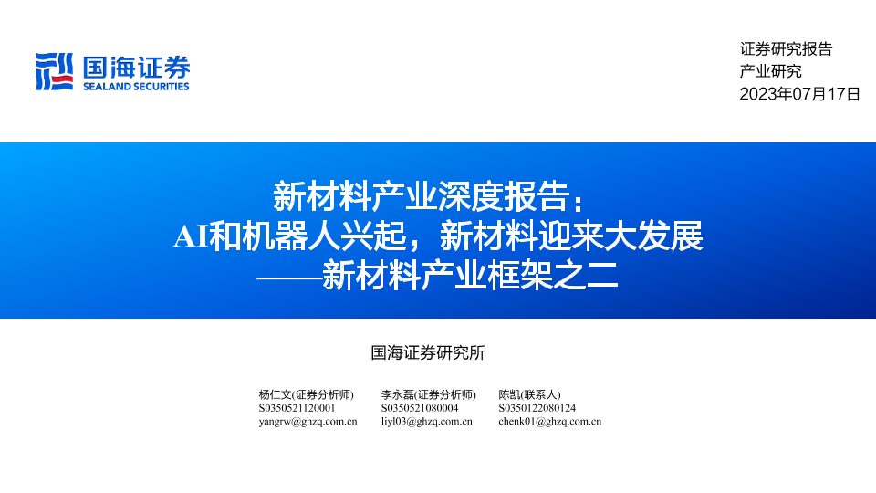 【国海证券】【20230717】新材料产业深度报告:AI和机器人兴起,新材料迎来大发展-68页