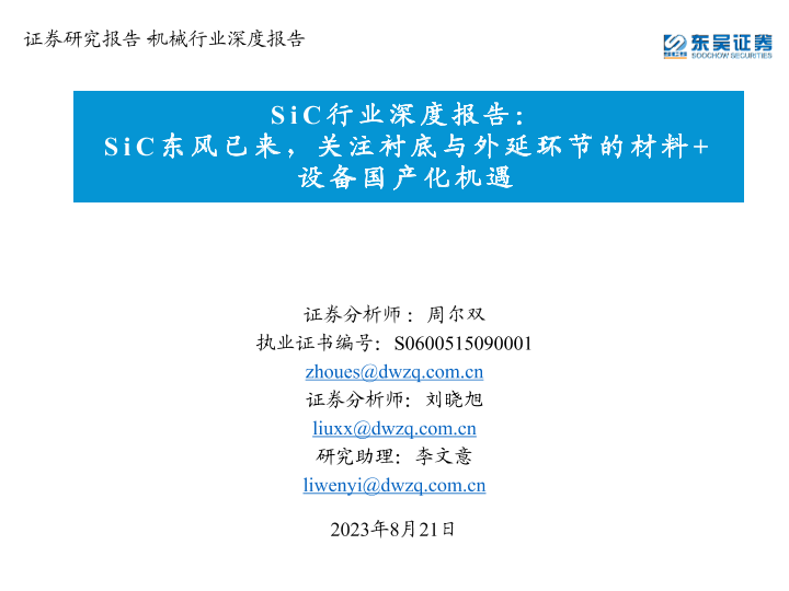 【东吴证券】【20230822】SiC行业深度报告 SiC东风已来-关注衬底与外延环节的材料+设备国产化机遇-76页