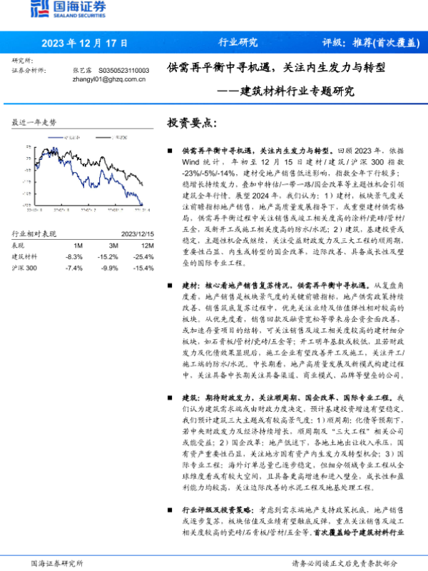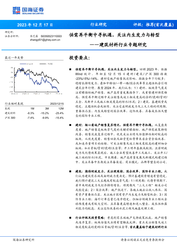 供需再平衡 内生发力 国海证券 建筑材料 转型