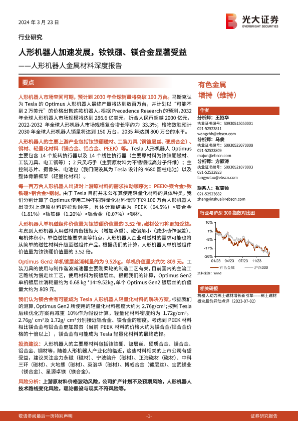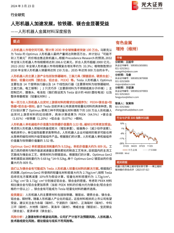【光大证券】【20240323】2024年03月27日更新-人形机器人金属材料行业深度报告:人形机器人加速发展钕铁硼、镁合金显著受益-37页