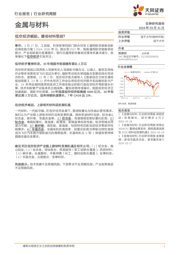 【天风证券】【20240331】低空经济崛起,哪些材料受益-5页