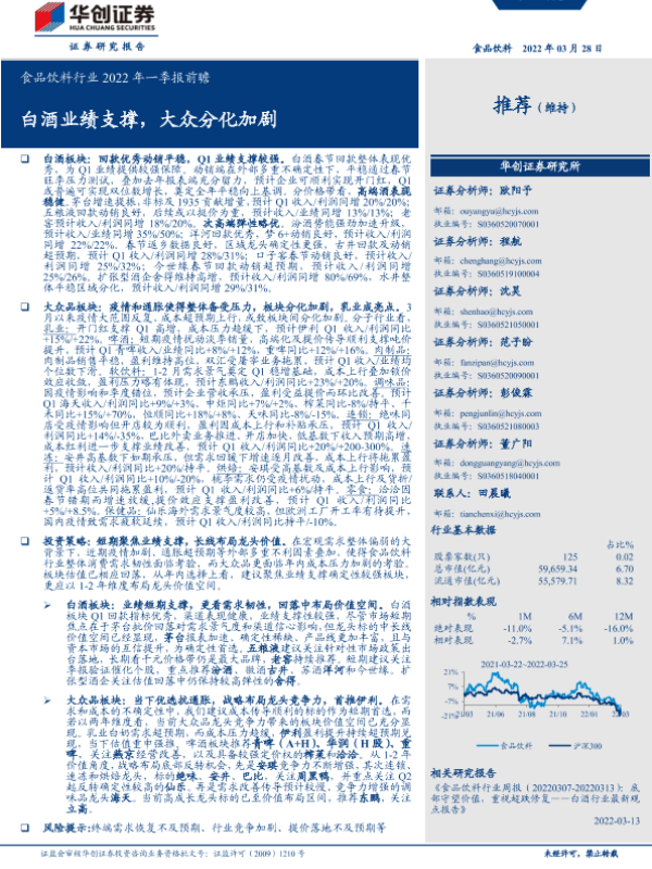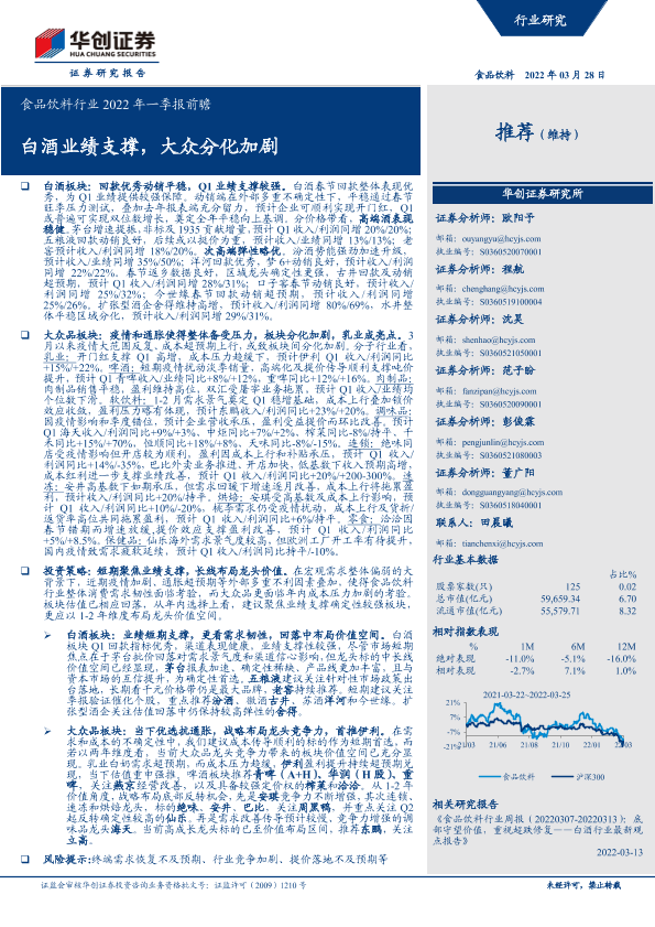 【华创证券】【20220328】食品饮料行业2022年一季报前瞻:白酒业绩支撑,大众分化加剧-17页