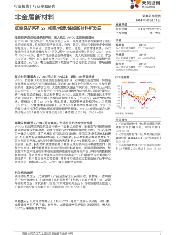 【天风证券】【20240701】2024年07月01日更新-低空经济系列2:减重、减震、降噪新材料新发展-32页
