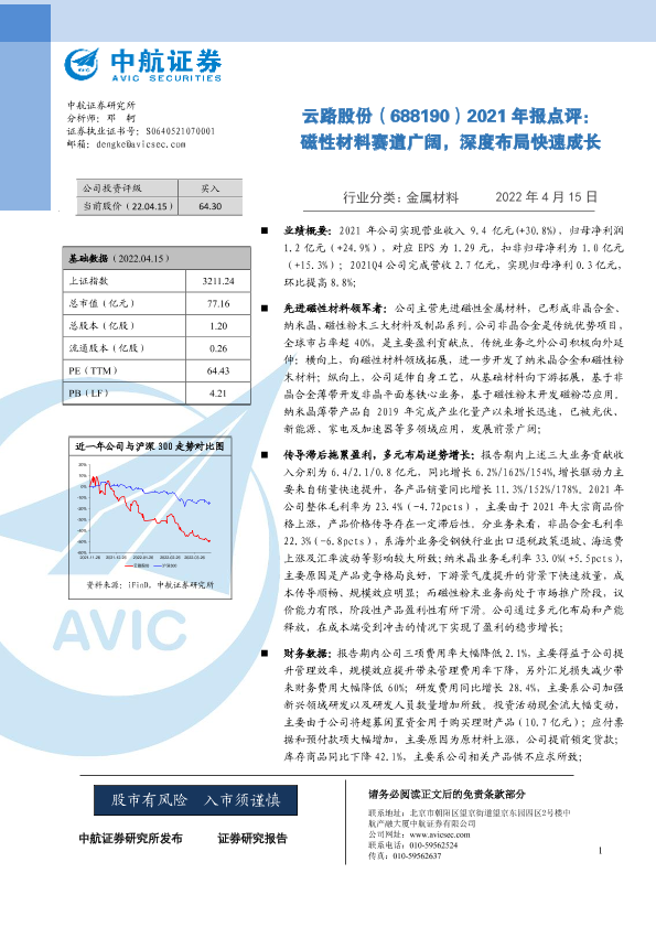 【中航证券】【20240809】2021年报点评:磁性材料赛道广阔,深度布局快速成长-5页