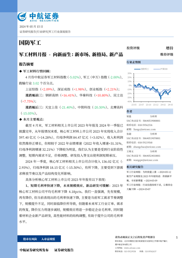 【中航证券】【20240815】军工材料月报-向新而生:新市场、新格局、新产品-23页
