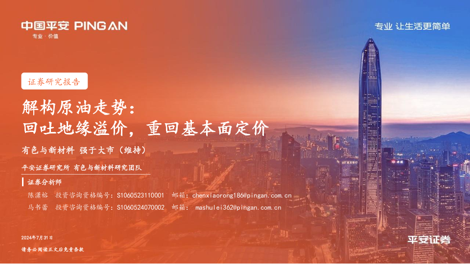 【平安证券】【20240731】解构原油走势:回吐地缘溢价,重回基本面定价-35页