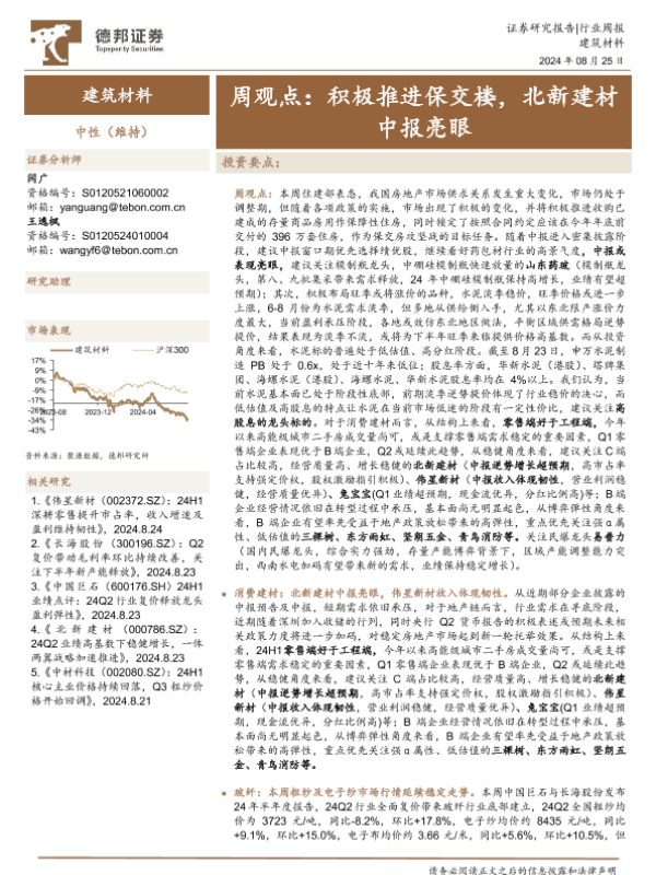 【德邦证券】【20240825】2024年09月06日更新-【德邦证券】建筑材料行业周观点:积极推进保交楼,北新建材中报亮眼-31页