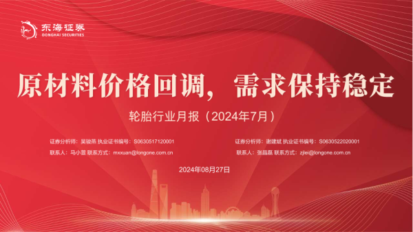 【东海证券】【20240827】轮胎行业月报(2024年7月):原材料价格回调,需求保持稳定-25页