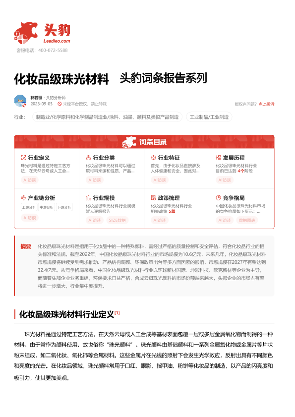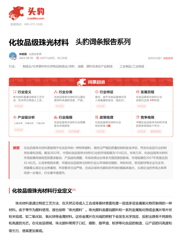 【头豹研究院】【20240926】2024年09月26日更新-【头豹研究院】化妆品级珠光材料 头豹词条报告系列-20页