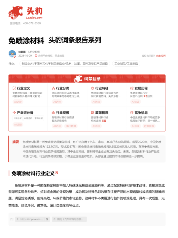 【头豹研究院】【20240926】2024年09月26日更新-【头豹研究院】免喷涂材料 头豹词条报告系列-20页