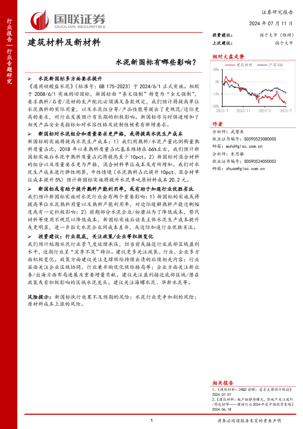 【国联证券】【20240711】建筑材料及新材料行业专题研究:水泥新国标有哪些影响-12页