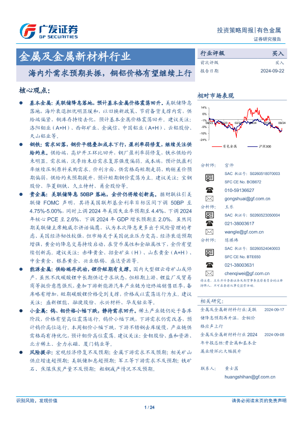 【广发证券】【20241010】2024年10月10日更新-【广发证券】金属及金属新材料行业:海内外需求预期共振,铜铝价格有望继续上行-24页