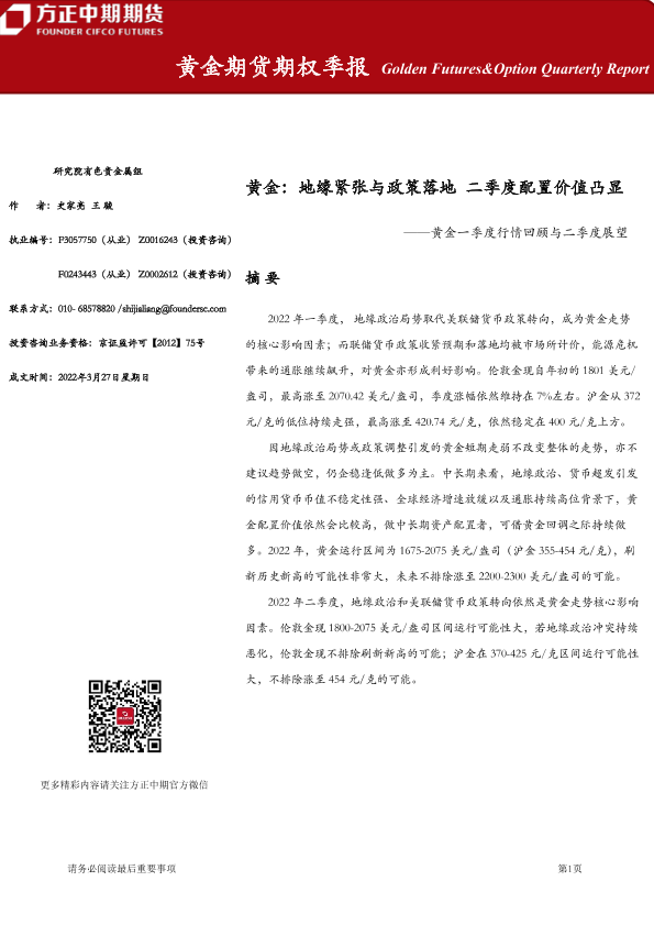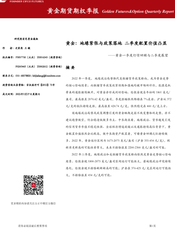 【方正中期期货】【20220327】黄金期货期权季报-65页