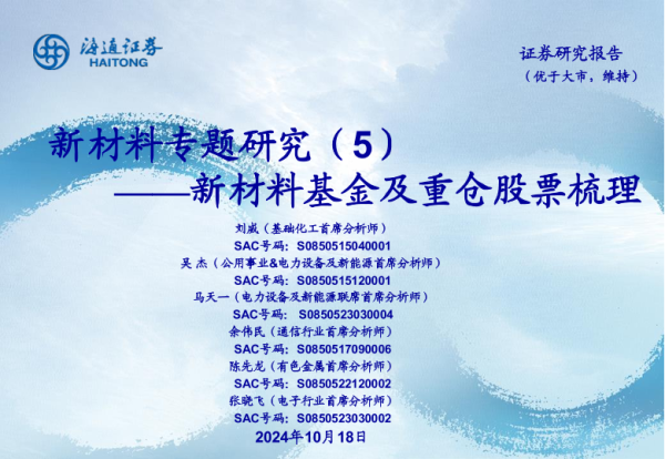 【海通证券】【20241018】2024年10月26日更新-新材料专题研究(5):新材料基金及重仓股票梳理-25页