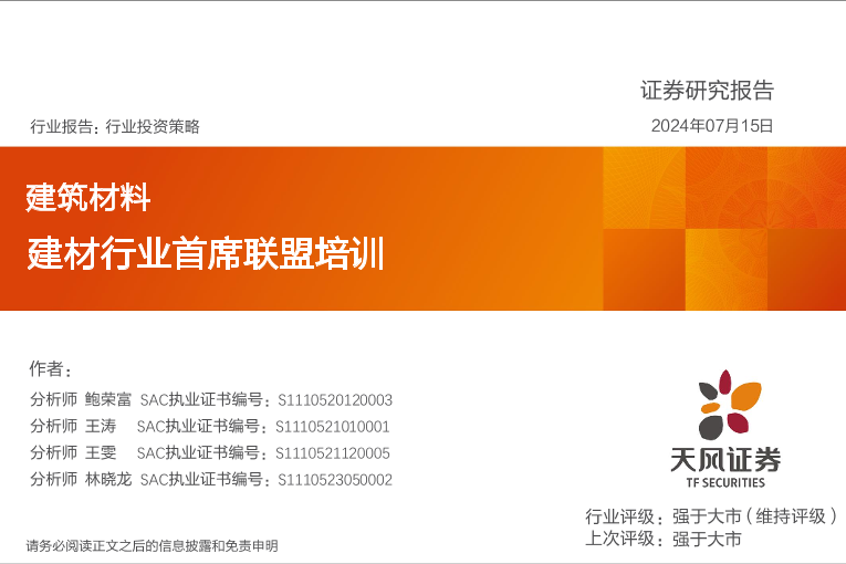 【天风证券】【20241101】2024年11月01日更新-建筑材料行业:建材行业首席联盟培训-29页