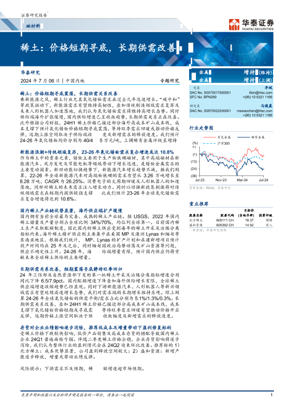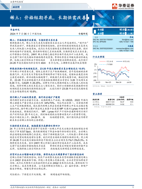 【华泰证券】【20241102】基础材料行业:稀土价格短期寻底长期供需改善-28页