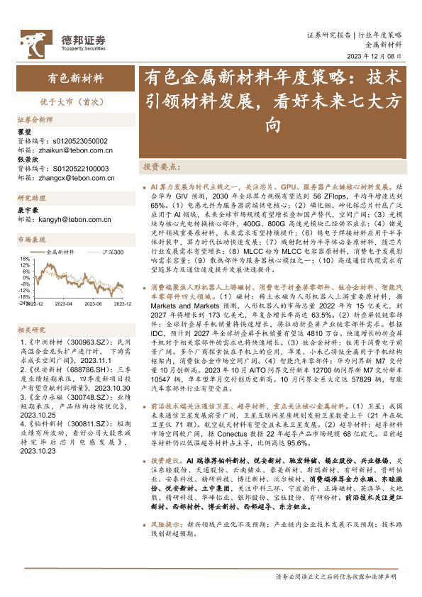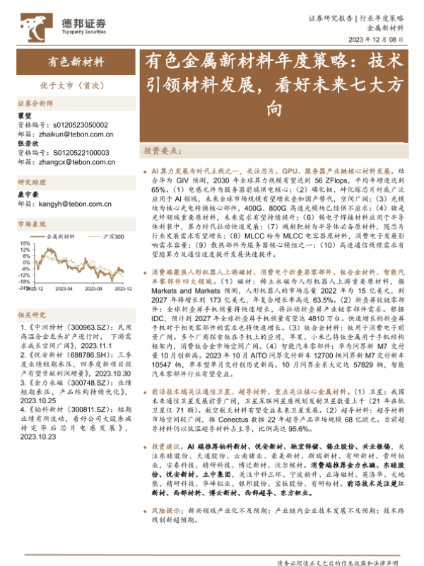 AI算力 前沿技术 新材料 有色金属 消费电子