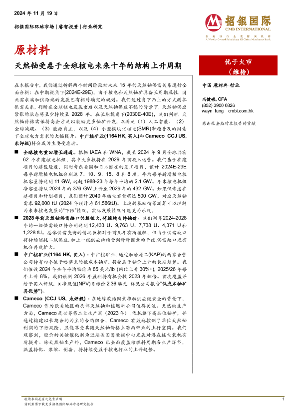 【招银国际环球市场】【20241119】原材料行业:天然铀受惠于全球核电未来十年的结构上升周期-31页