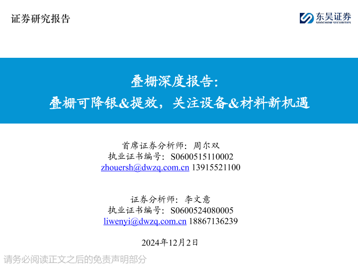 【东吴证券】【20241202】2024年12月22日更新-叠栅深度报告:叠栅可降银&提效关注设备&材料新机遇-35页
