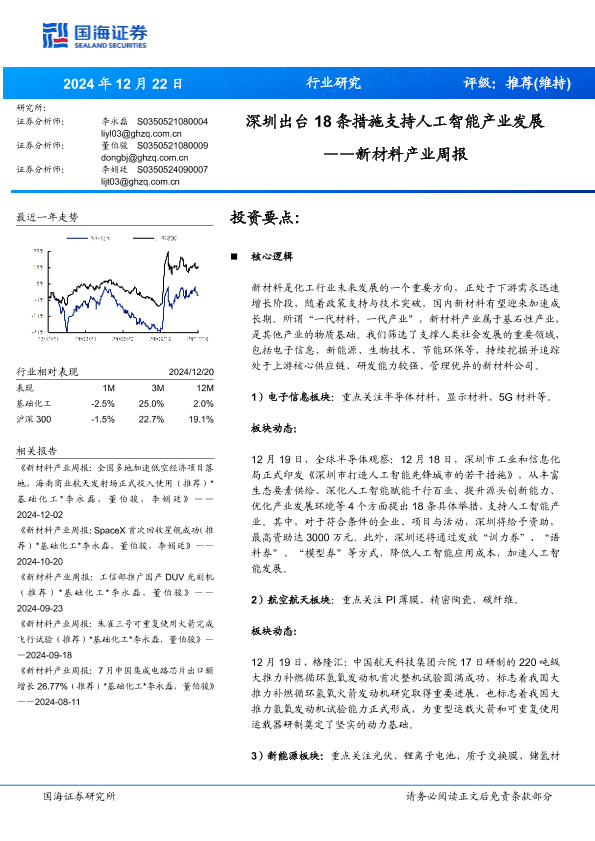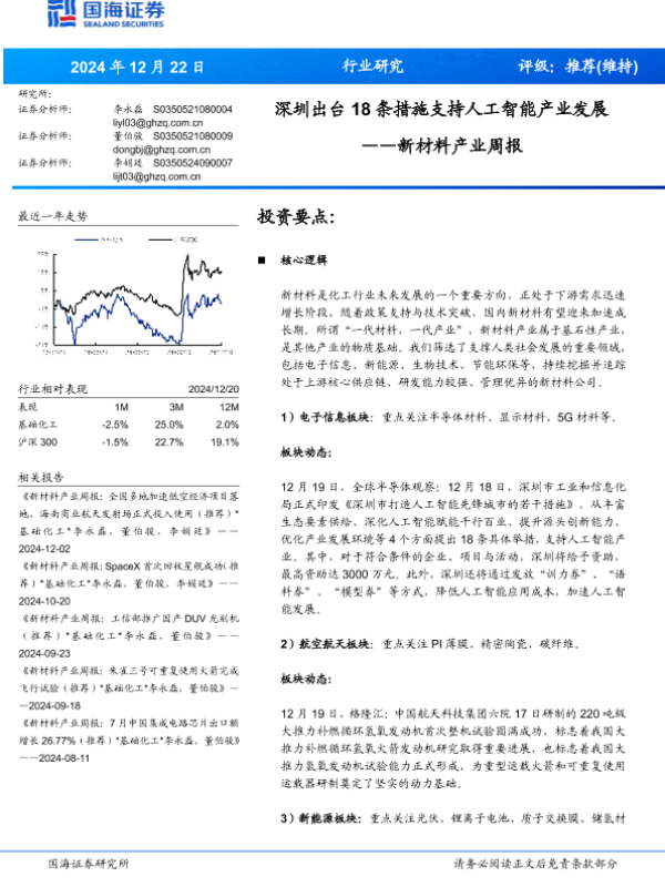 【国海证券】【20241222】2024年12月25日更新-【国海证券】新材料产业周报:深圳出台18条措施支持人工智能产业发展-30页