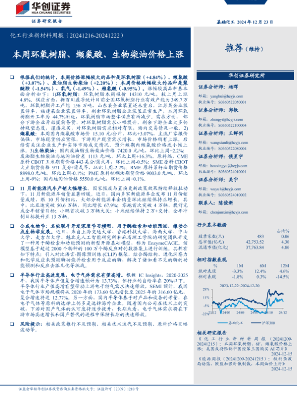 【华创证券】【20241224】2024年12月24日更新-【华创证券】化工行业新材料周报(-20241222):本周环氧树脂、缬氨酸、生物柴油价格上涨-65页