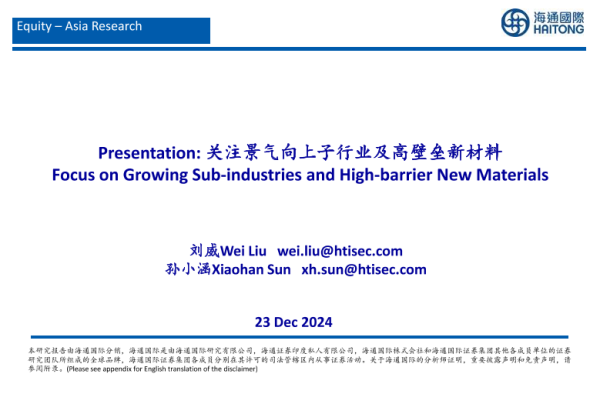 【海通国际】【20241226】关注景气向上子行业及高壁垒新材料-60页