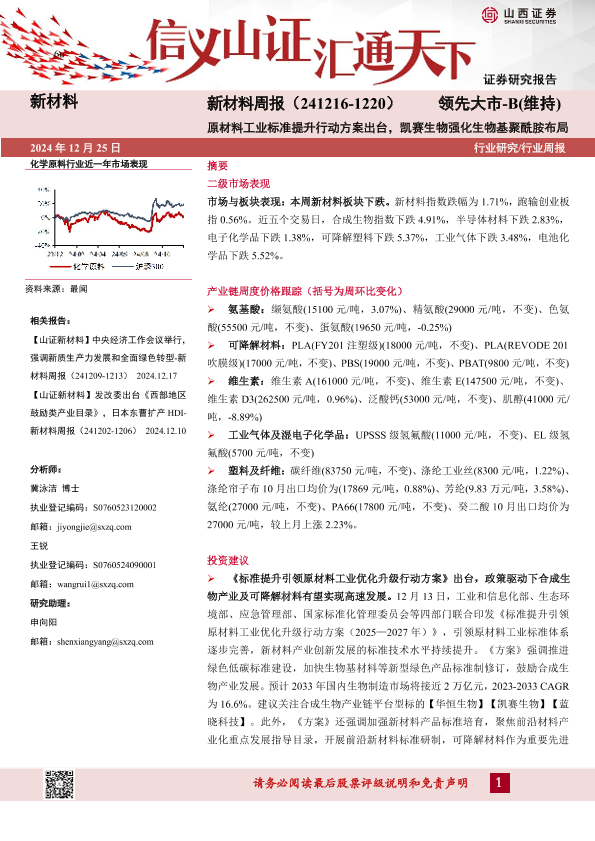 【山西证券】【20241225】新材料周报:原材料工业标准提升行动方案出台,凯赛生物强化生物基聚酰胺布局-23页