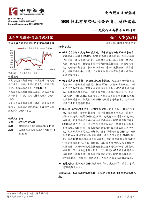 【中原证券】【20250102】2025年01月02日更新-光伏行业新技术专题研究:0BB技术有望带动相关设备、材料需求-16页