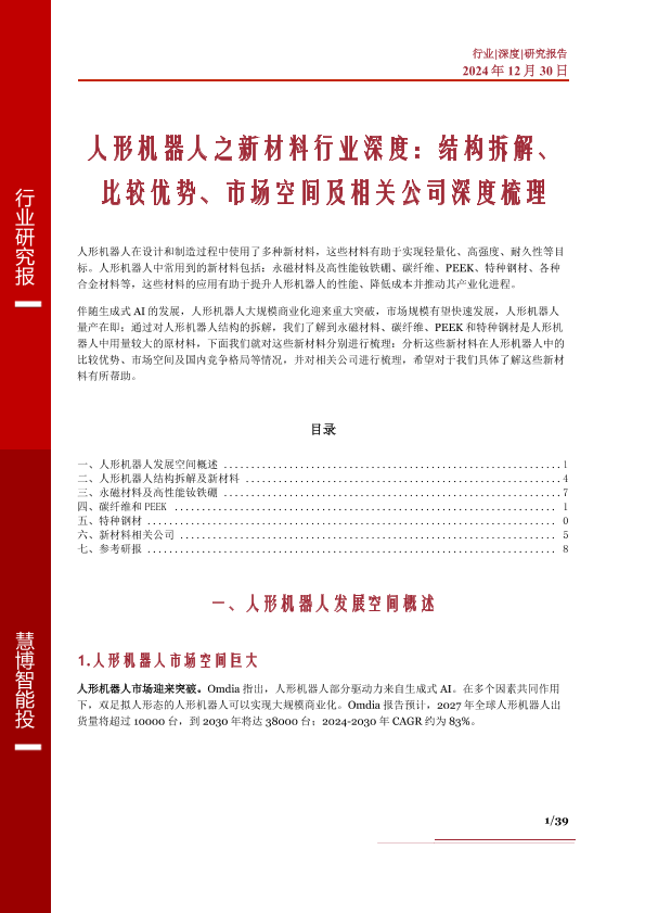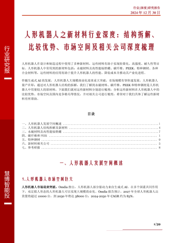 【慧博智能投】【20250101】人形机器人之新材料行业深度:结构拆解、比较优势、市场空间及相关公司深度梳理-39页
