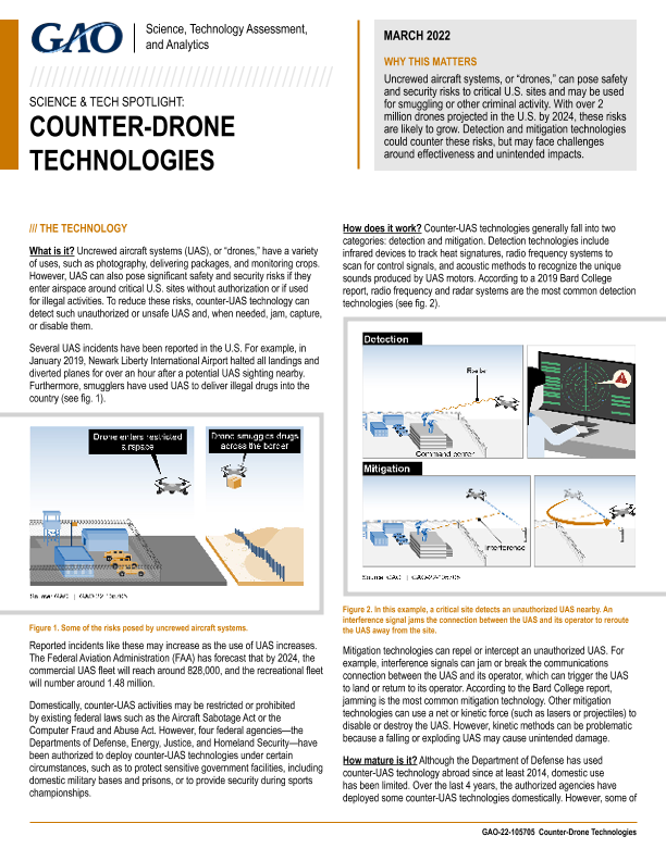 【U.S. Government Accountability Office】【202203】反无人机技术报告-2页