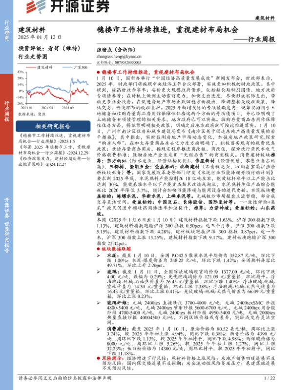 【开源证券】【20250115】建筑材料行业周报:稳楼市工作持续推进,重视建材布局机会-22页