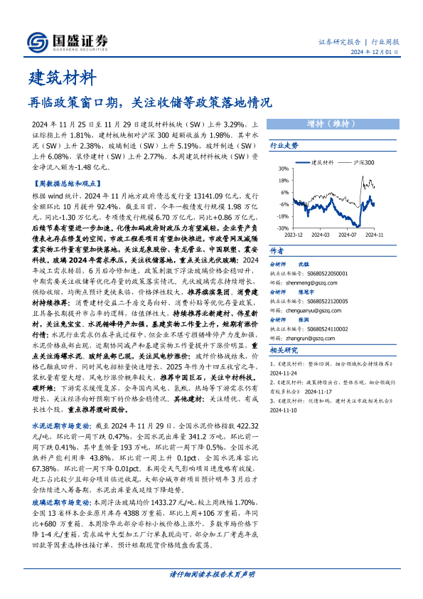 市场变动 建筑材料 投资建议 政策分析 行业跟踪