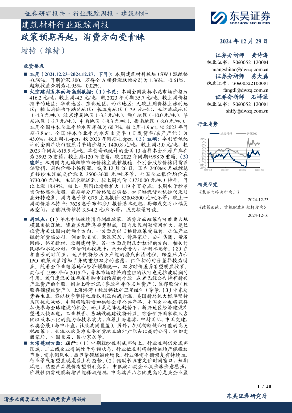 【东吴证券】【20241229】建筑材料行业跟踪周报:政策预期再起,消费方向受青睐-20页