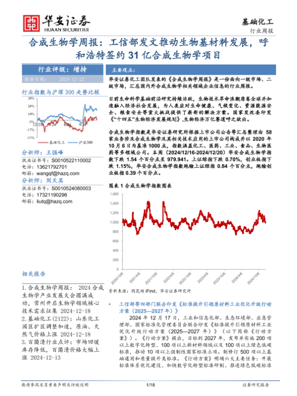 【华安证券】【20241222】2025年02月10日更新-【华安证券】合成生物学周报:工信部发文推动生物基材料发展,呼和浩特签约31亿合成生物学项目-18页