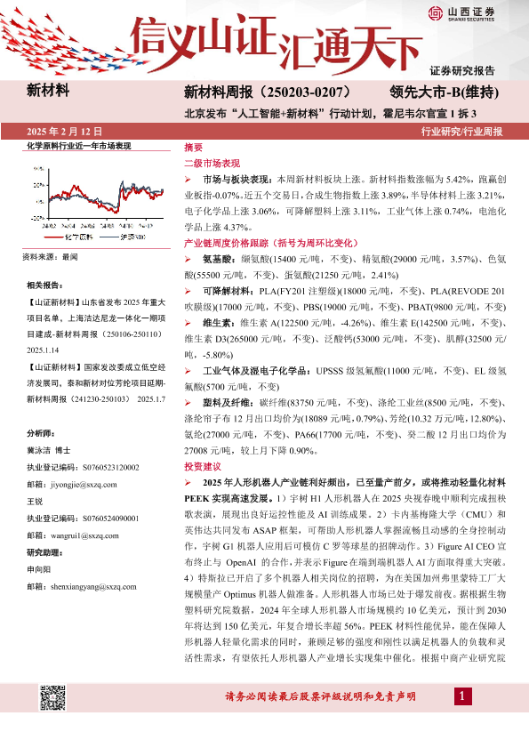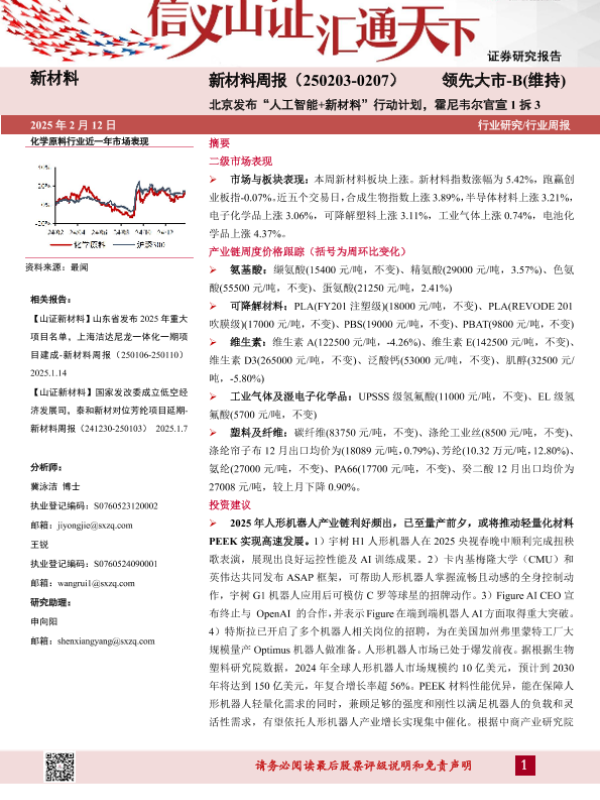 【山西证券】【20250213】新材料行业周报:新材料周报(-0207)北京发布“人工智能+新材料”行动计划,霍尼韦尔官宣1拆3-23页