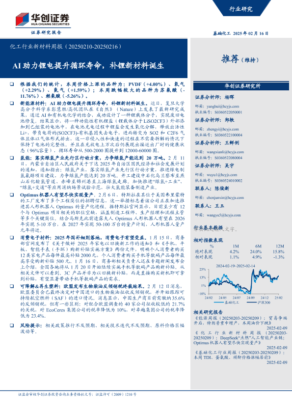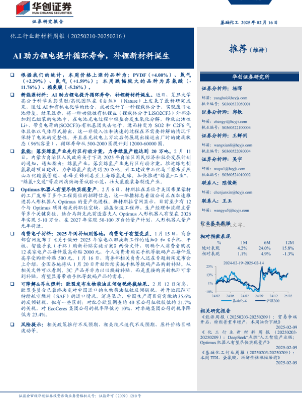 【华创证券】【20250219】2025年02月19日更新-【华创证券】化工行业新材料周报:AI助力锂电提升循环寿命,补锂新材料诞生-41页