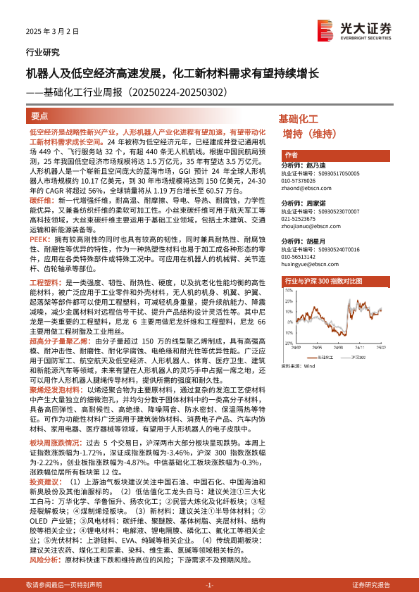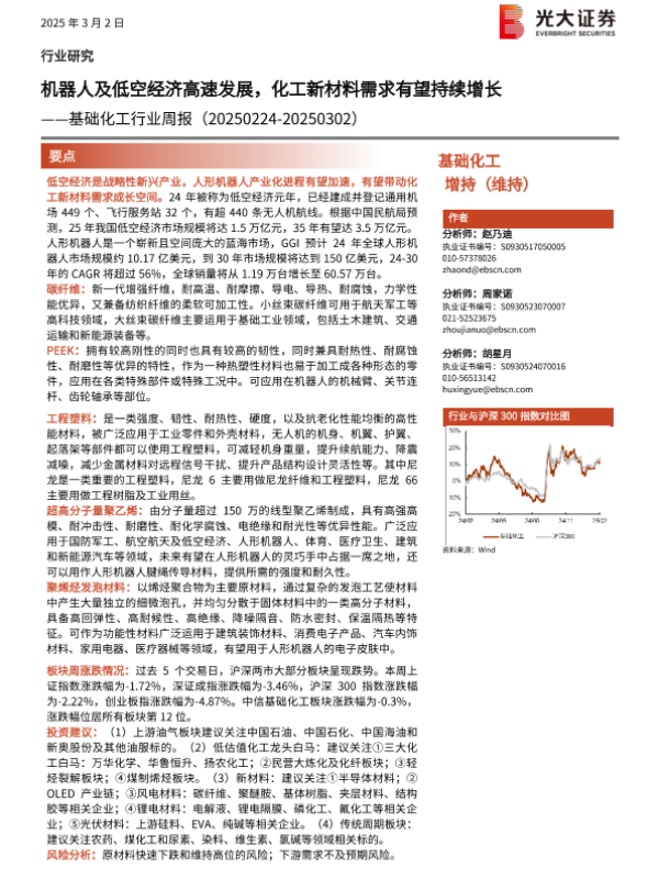 【光大证券】【20250302】基础化工行业周报:机器人及低空经济高速发展,化工新材料需求有望持续增长-30页